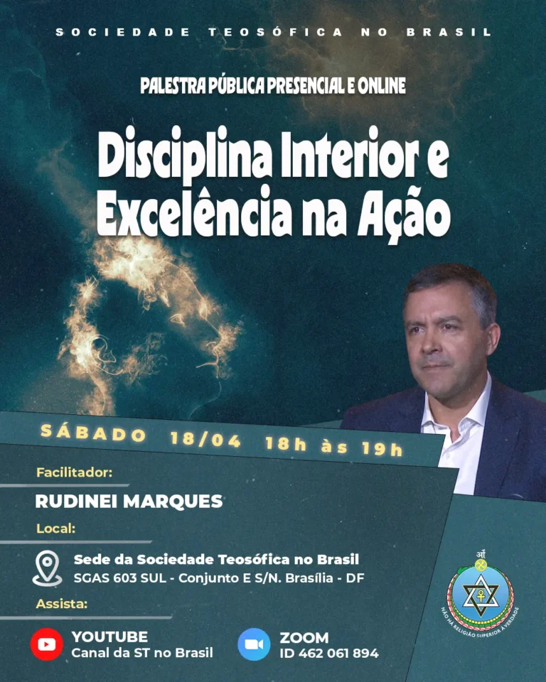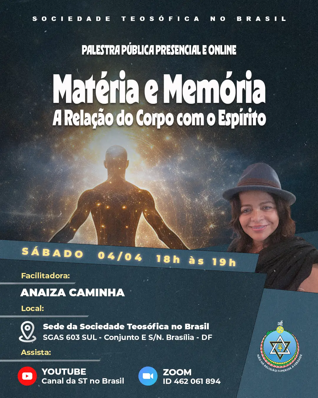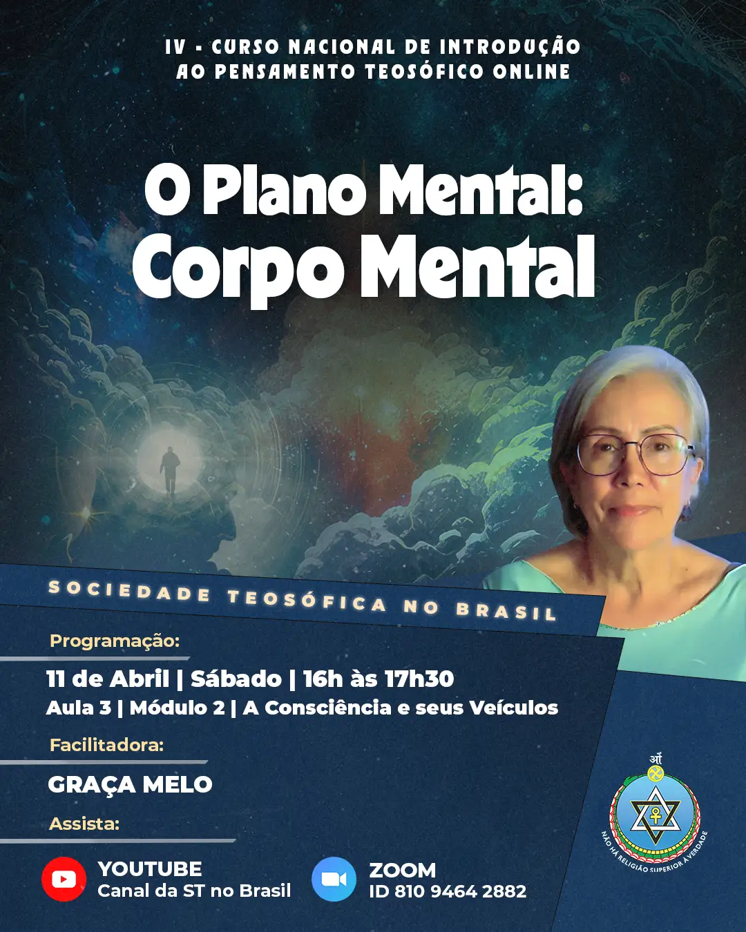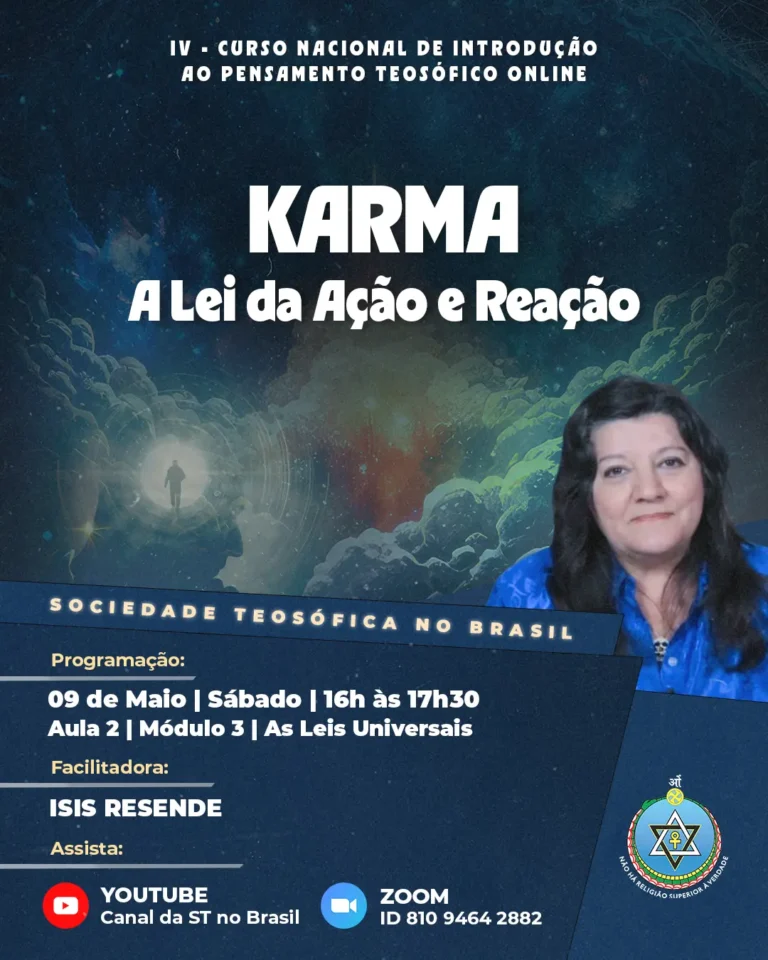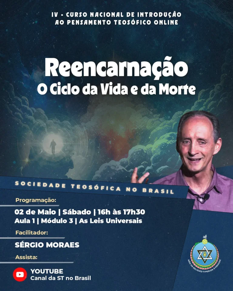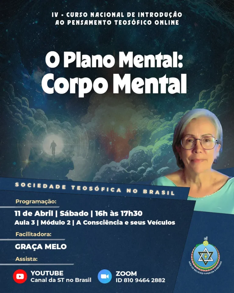 A Doutrina Secreta é a obra central do movimento teosófico moderno. Em nossa Escola Internacional faremos uma imersão em seu conteúdo, aprofundando reflexões sobre a Sabedoria das Idades com momentos de estudo e meditação contemplativa — explorando ensinamentos sobre a origem do universo, a evolução da humanidade e as leis espirituais que regem a vida, integrando ciência, filosofia e espiritualidade em uma visão profunda e transformadora.